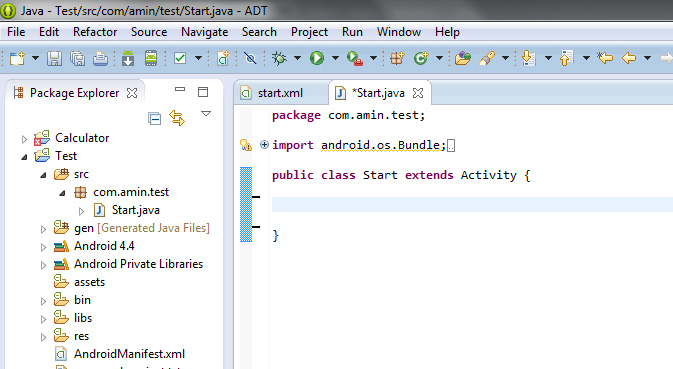 در ابتدای ایجاد یک activity، به صورت پیش فرض کلاسی ایجاد میشود به نام دلخواهی که ما داده ایم (برای مثال start) که از نوع activity میباشد.