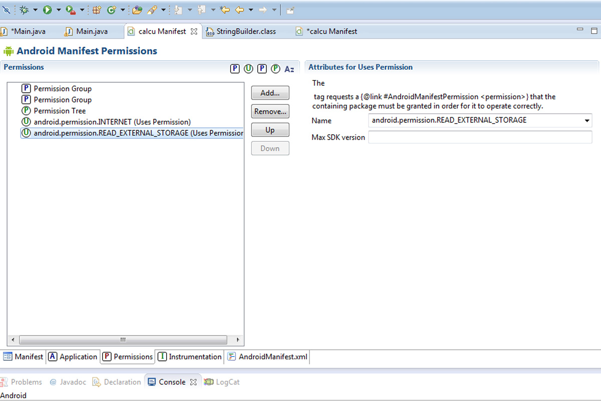 برای مثال android.permission.INTERNET و android.permission.READ_EXTERNAL_STORAGE اجازه دسترسی به اینترنت و حافظه خارجی گوشی کاربر را به برنامه میدهد.